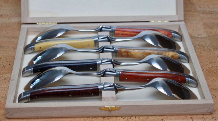 Dessertgabeln, Dessertlöffel aus unterschiedlichen Griffmaterielien und hervrragend verarbeitet.Made in France