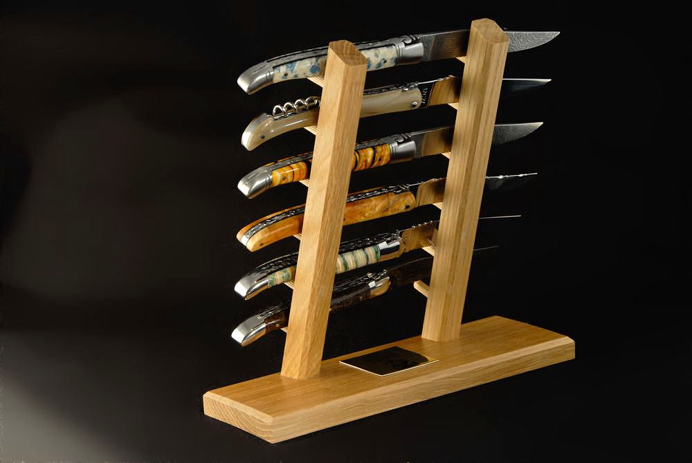 Claude Dozorme Ausstellungsträger aus Eichenholz für 6 Laguiole-Messer