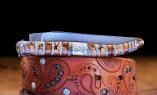 Die wunderschöne Färbung im Material kommt durch die Einlagerung von verschiedenen Mineralien aus dem Boden des Fundortes und die Farbe des Kunstharzes, die zum Stabilisieren benutzt wurde. Die Bearbeitung des Materials ist relativ schwierig und es werden hochwertige Werkzeuge benötigt.