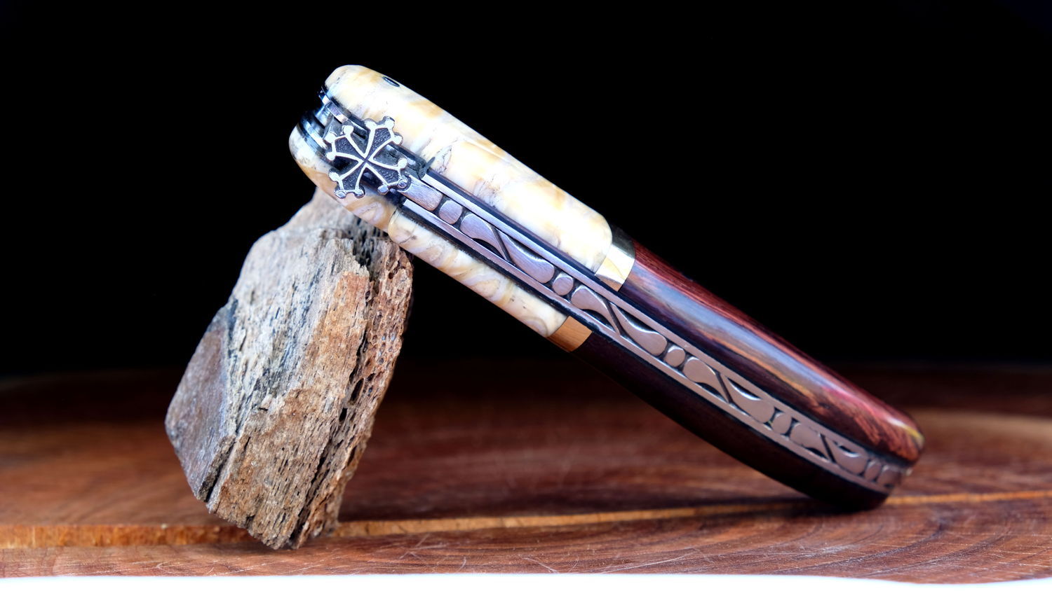 Die traumhafte Maserung des natürlichen Materials wird durch die mechanischen Vorteile des Stabilisierungsprozesses perfekt ergänzt.