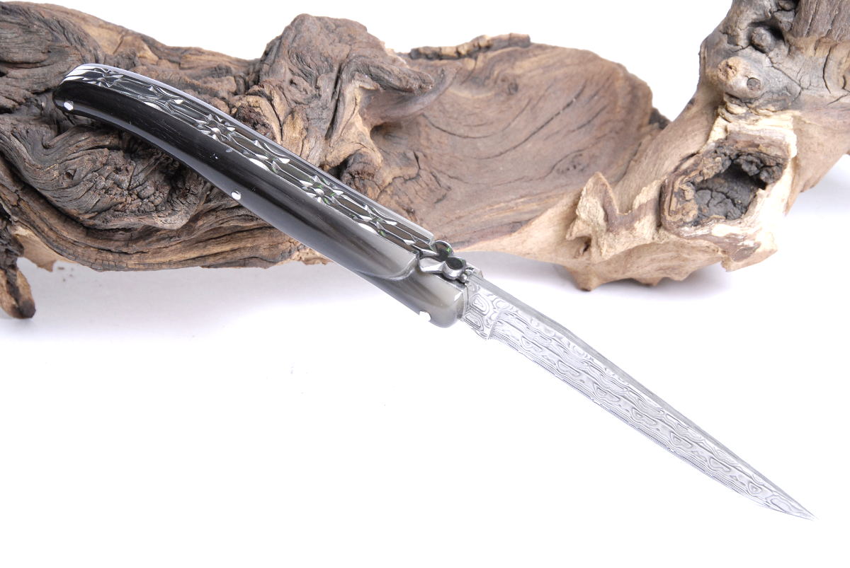 Taschenmesser Laguiole Claude Dozorme, Damast, Plein, Hornspitze