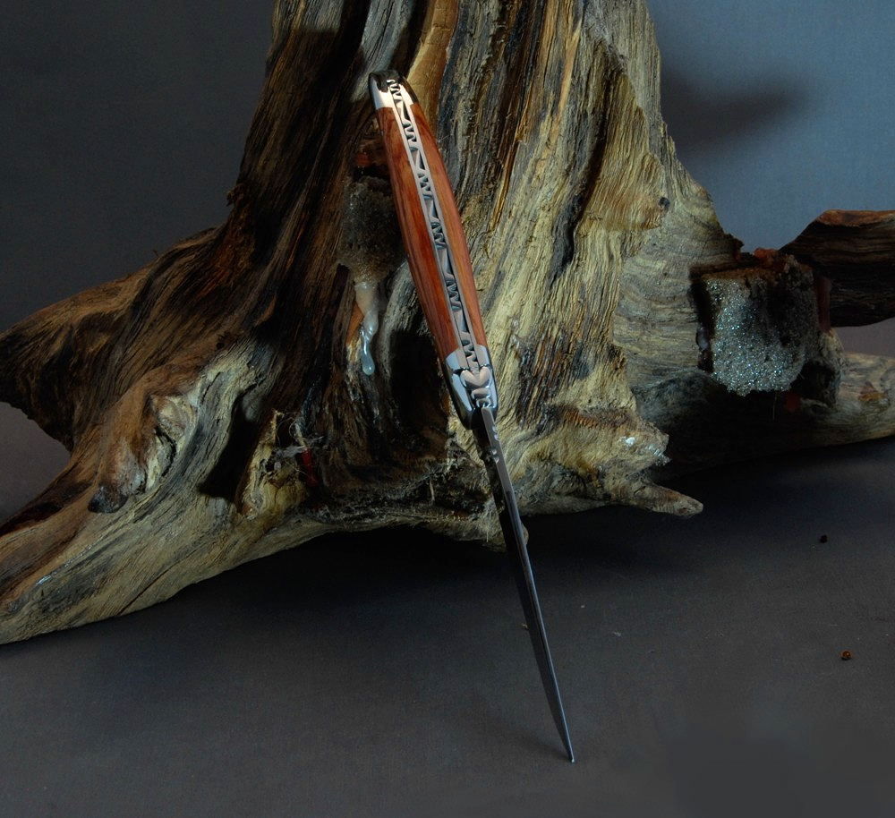 Südamerika ist die Heimat der Bäume, die das rotfarbene, außergewöhnlich harte Holz für den Griff dieses besonderen Messers liefert.