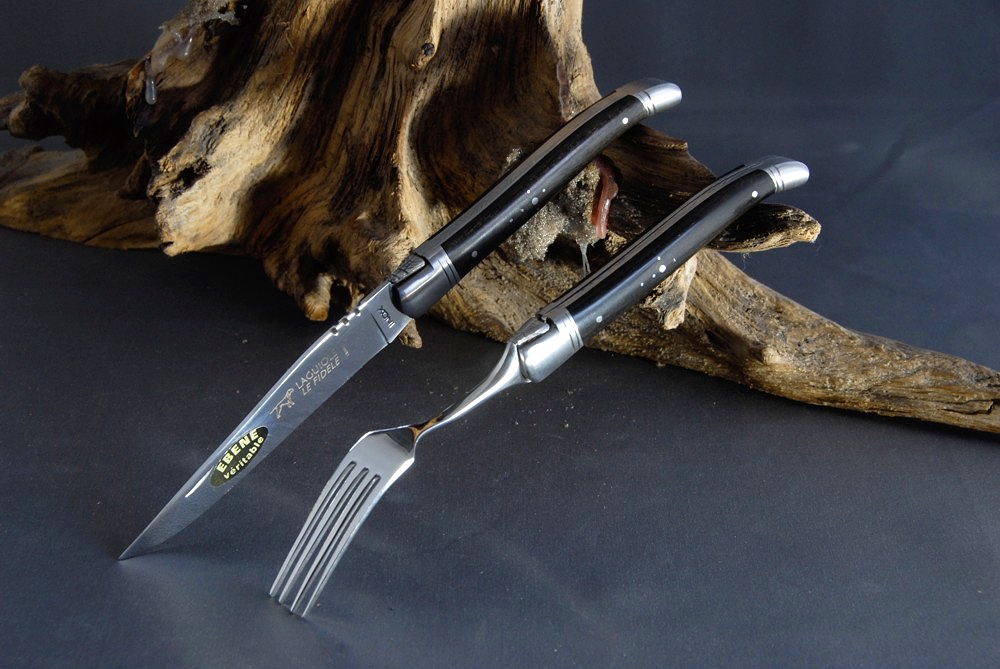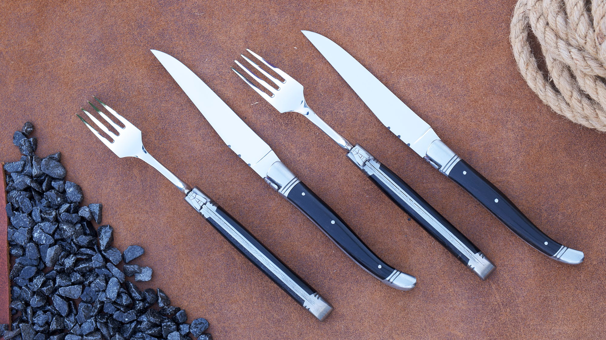 Laguiole Le Fidèle 4-teilig, Steakmesserset mit Gabeln, Ebenholz, brillant/brosse