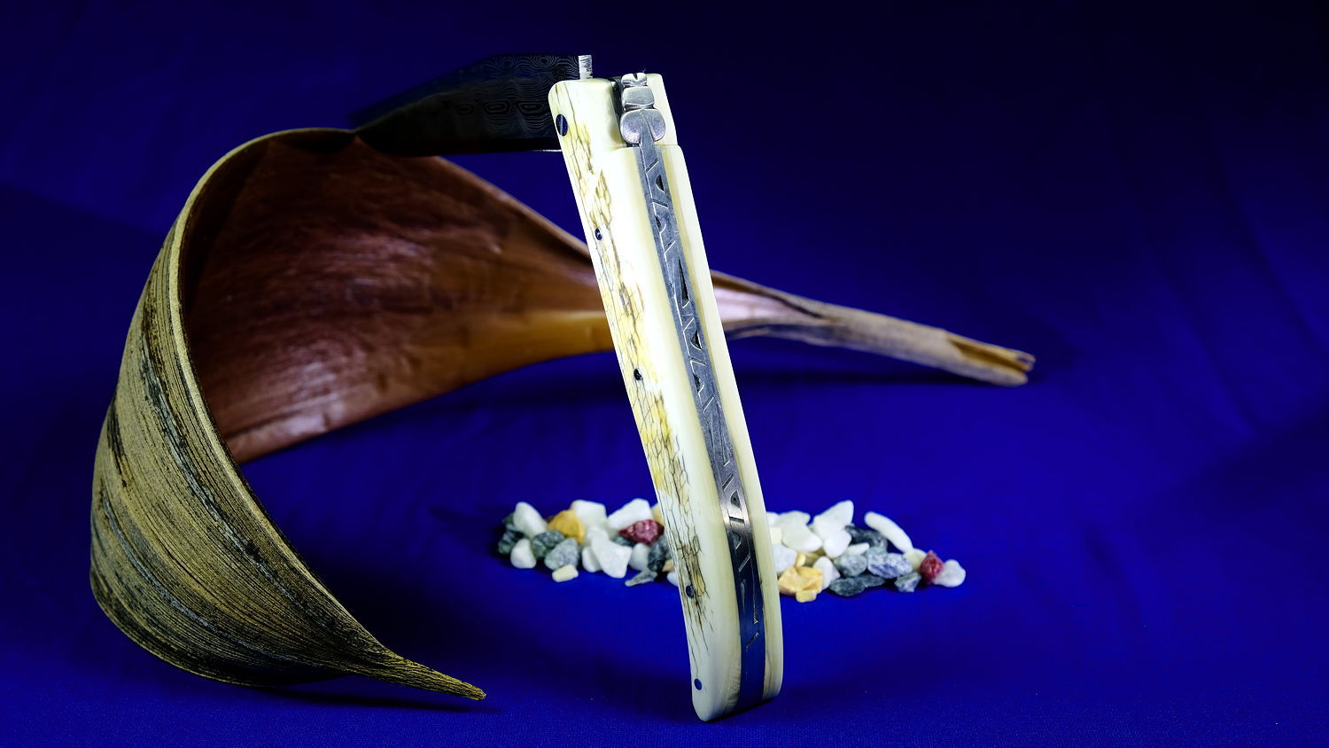 Die Färbung des Elfenbeins stammt von eingedrungenen Mineralstoffen, vornehmlich Eisen und von der Umwandlung der enthaltenen organischen Substanz. Die Bearbeitung des Materials ist relativ schwierig. Es werden hochwertige Werkzeuge benötigt. Das Endergebnis ist ein unvergleichliches Laguiole Messer!