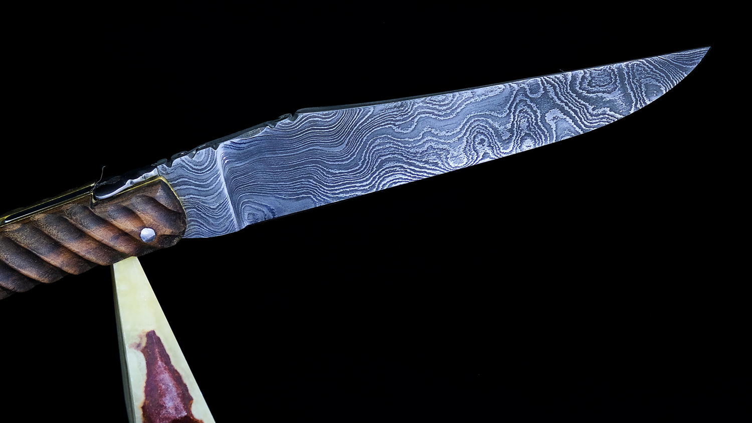 Die Carbon-Damast-Klingen werden in einer befreundeten Werkstatt mit ca. 768 Lagen per Hand hergestellt. Ein wunderbares Damastmuster und höchste Qualität kennzeichnen diese französischen Klingen. Bitte darauf achten, dass die Carbon-Damastklingen nicht rostfrei sind und gepflegt werden sollten.