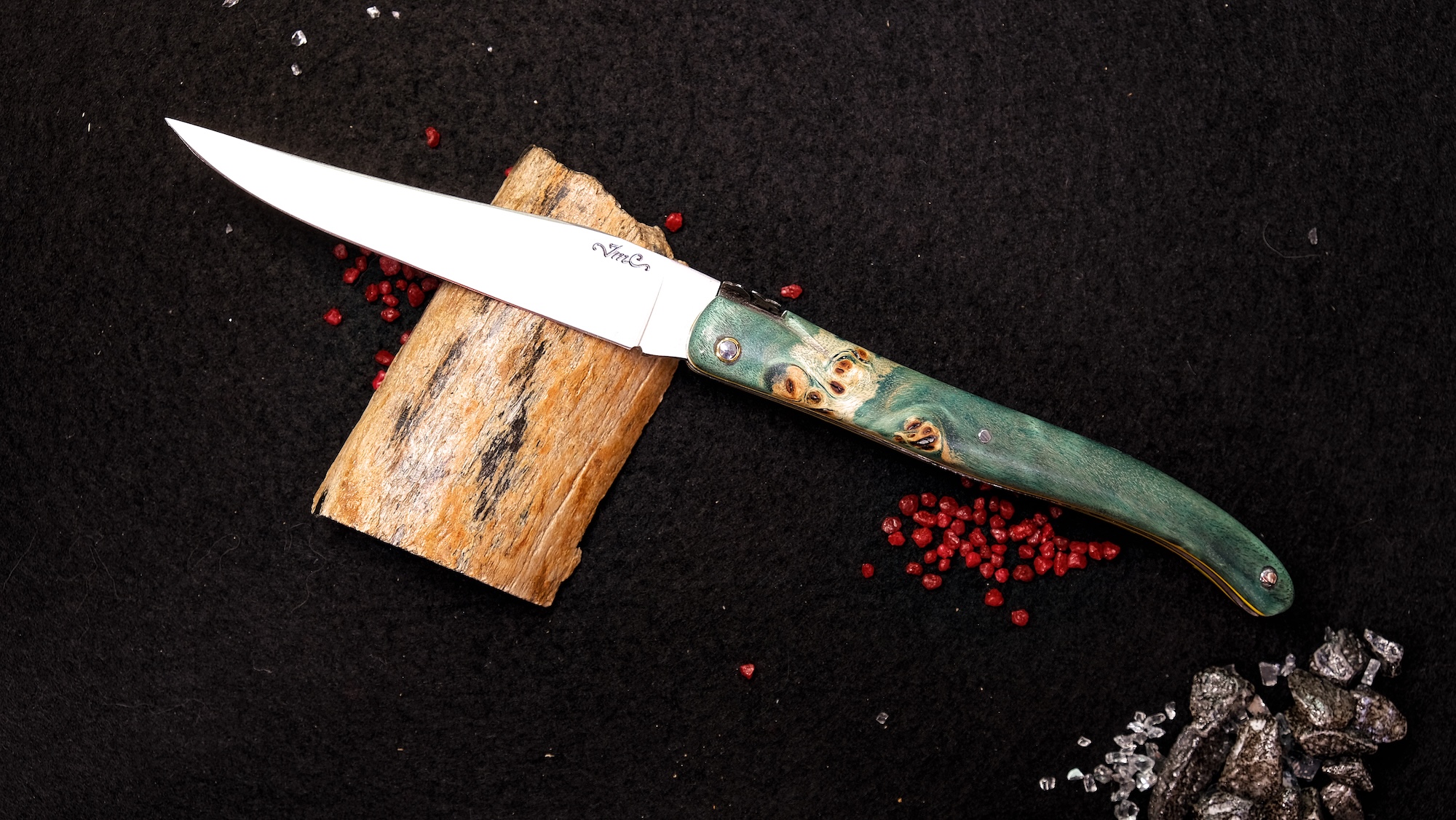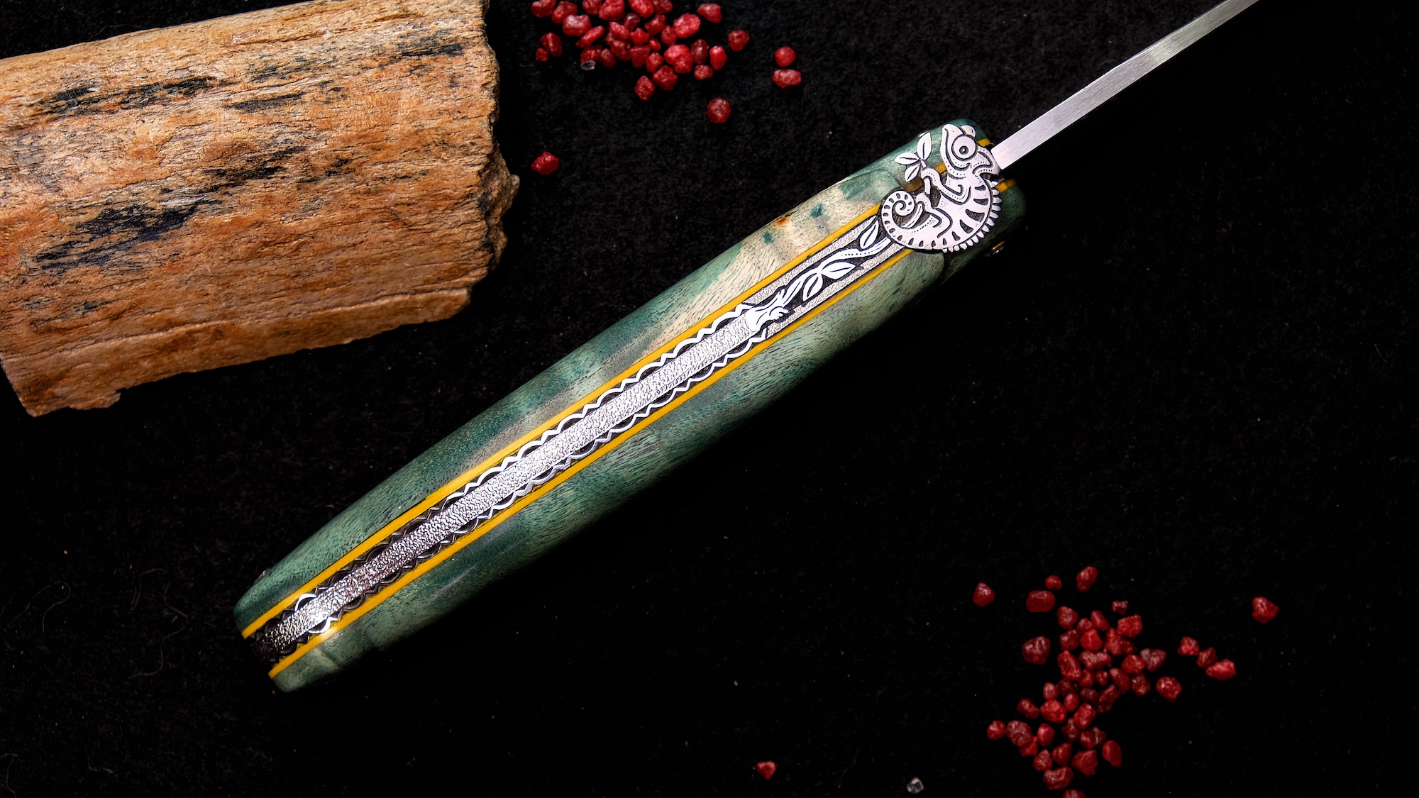 Jean-Michel Cayron ist 1972 geboren worden, hat 19 Jahre für Laguiole Honore Durand und 4 Jahr für Vent D'aubrac gearbeitet. Seit 2019 ist er selbständig und fertigt wunderschöne Taschenmesser. 2007 und 2011 wurde er als bester Messermacher Frankreichs gewählt worden. Er ist leidenschaftlicher Gravurkünstler und hat Freude daran, jedes Messer durch die Bearbeitung zu einem Unikat zu machen, wie er selbst sagt. Auch bei der Auswahl der Materialien für den Griff achtet er darauf, dass sie mit den Gravuren harmonieren und ein kohärentes Thema bieten.