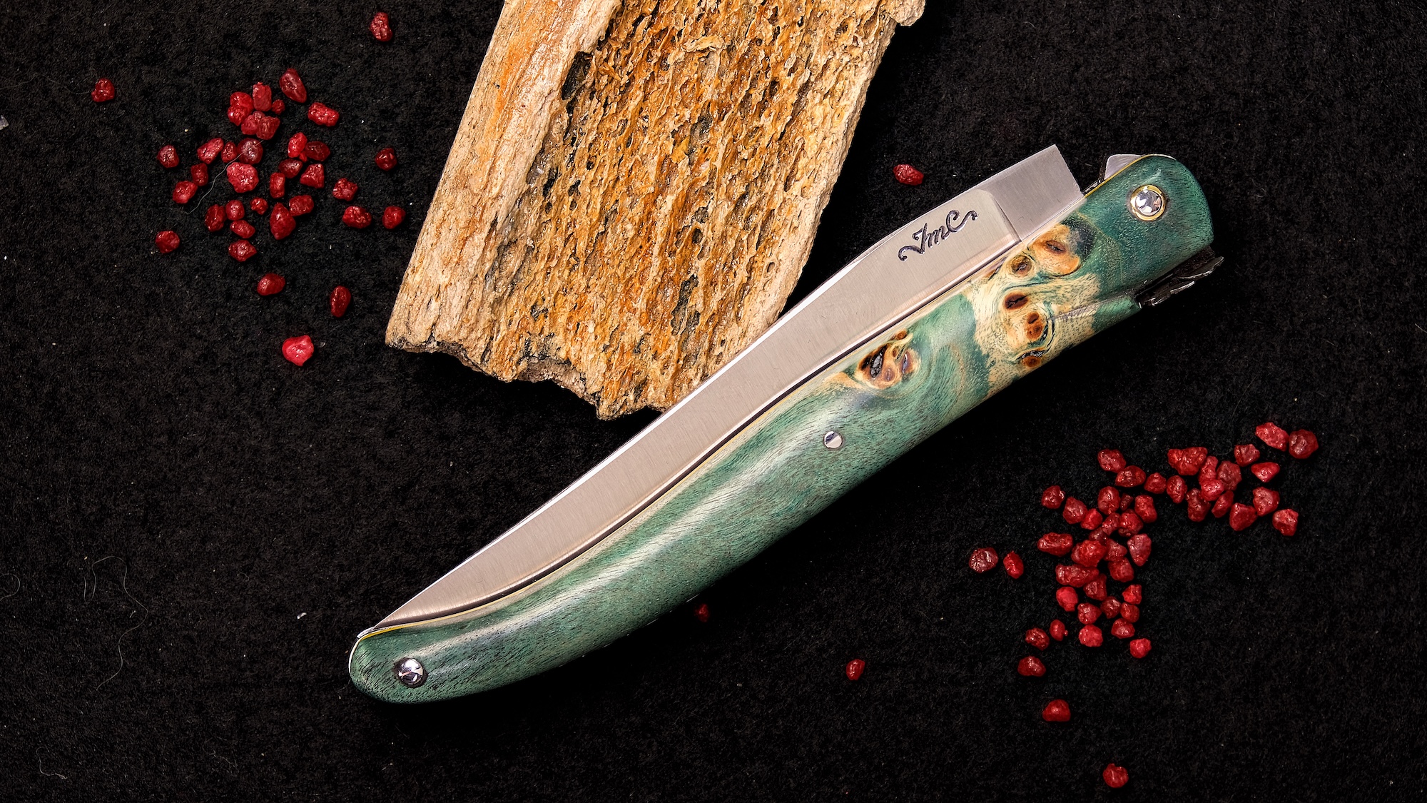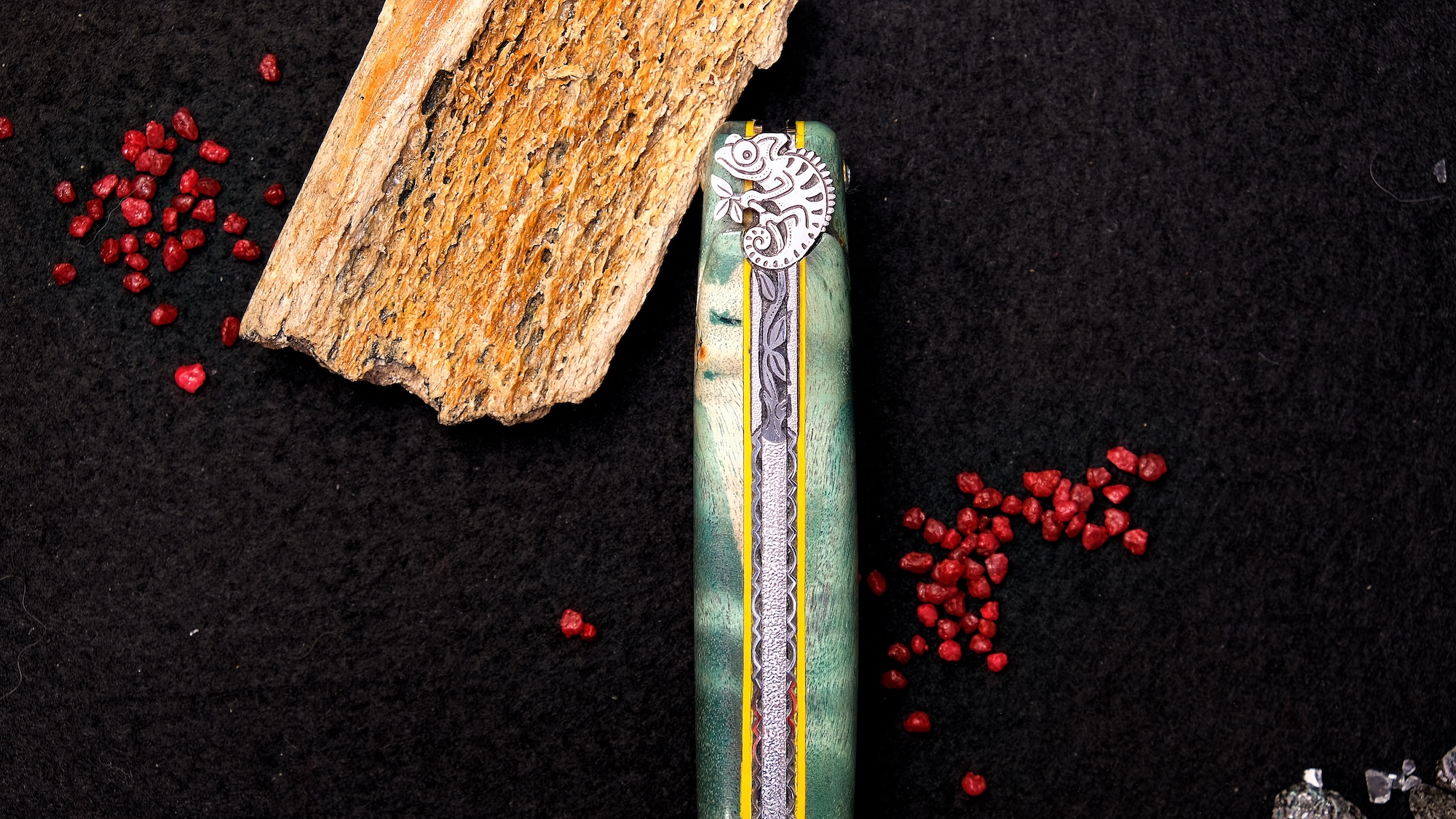 Laguiole-Taschenmesser Esdition CHAMÄLEON von Jean-Michel Cayron Edition CHAMÄLEON – ein echtes Kunstwerk französischer Messermacherkunst. Der edle grüne Holzgriff erinnert an die faszinierende Farbvielfalt der Chamäleons, während die aufwendig von Hand gefertigte Rückenguillochage jedes Detail zu einem Unikat macht. Dieses Messer ist nicht einfach nur ein Werkzeug – es ist Ausdruck von Stil, Präzision und Leidenschaft.