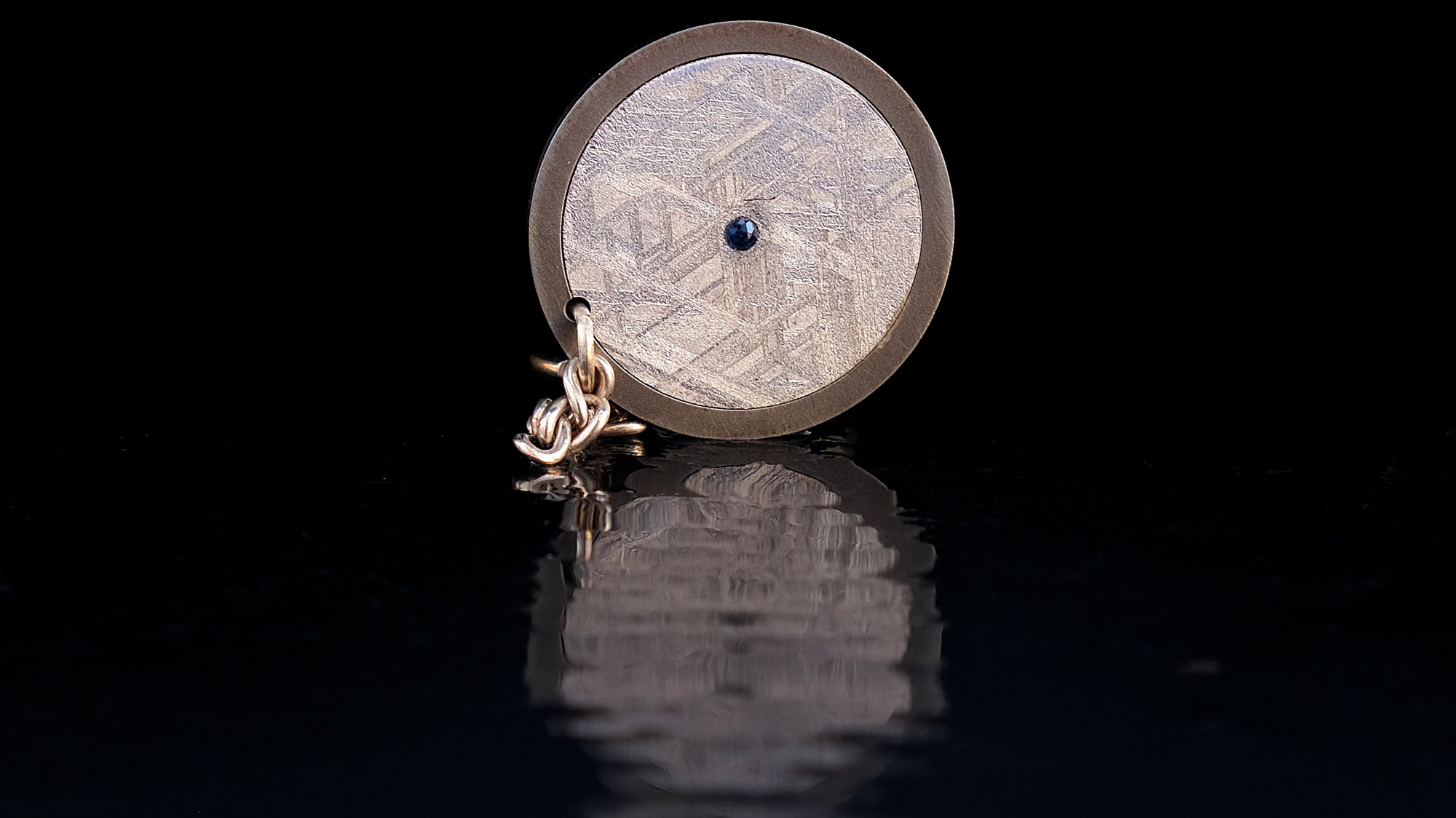 Meteoriten-Schlüsselanhänger mit Muoninalusta-Meteoriten, Saphir und Kette aus Silber