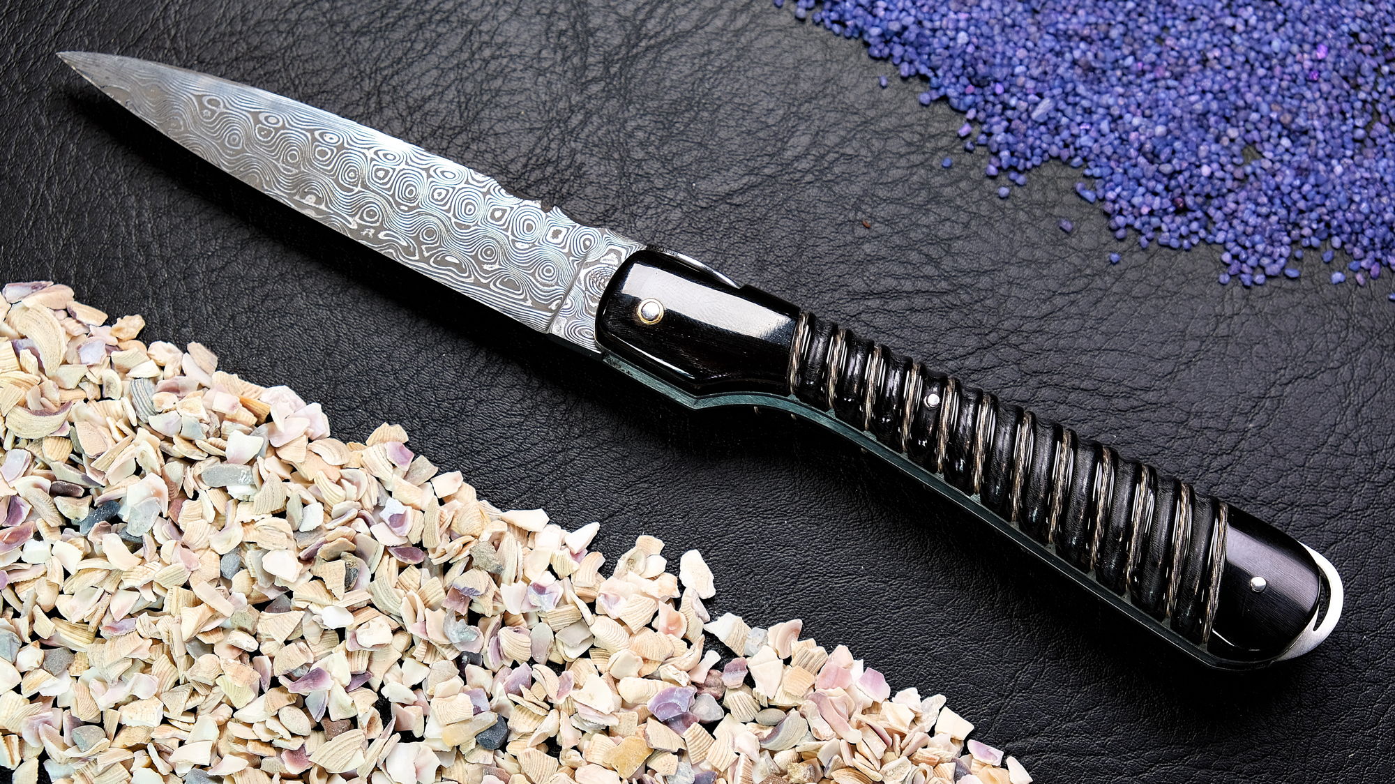 Taschenmesser Fontenille Pataud, Vendetta KORSIKA LE SPERONE Hornspitze, Damastklinge, BackLock