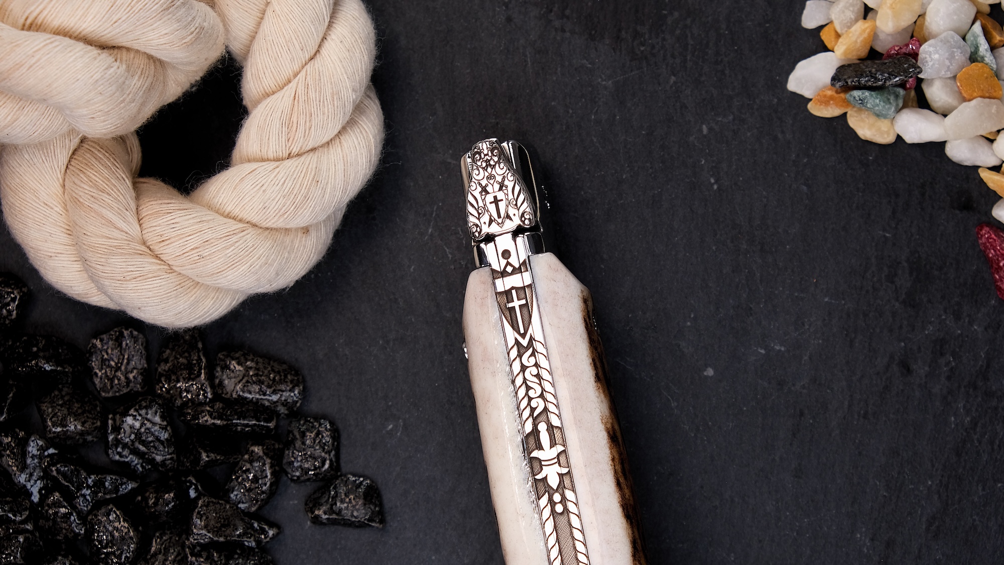 Offizielles Echtheitszertifikat - eine Tradition aufrecht erhalten! Wenn ein Laguiole‑Schmied mit Hingabe und jahrhundertealter Tradition sein Handwerk ausübt, dann erschafft er mit jedem Hammerschlag nicht einfach nur ein Messer — er erschafft ein einzigartiges Kunstwerk, das seine Seele trägt. Jede Klinge, jede Gravur, jede geschwungene Linie ist Ausdruck von Stolz, Präzision und der Liebe zum Detail.