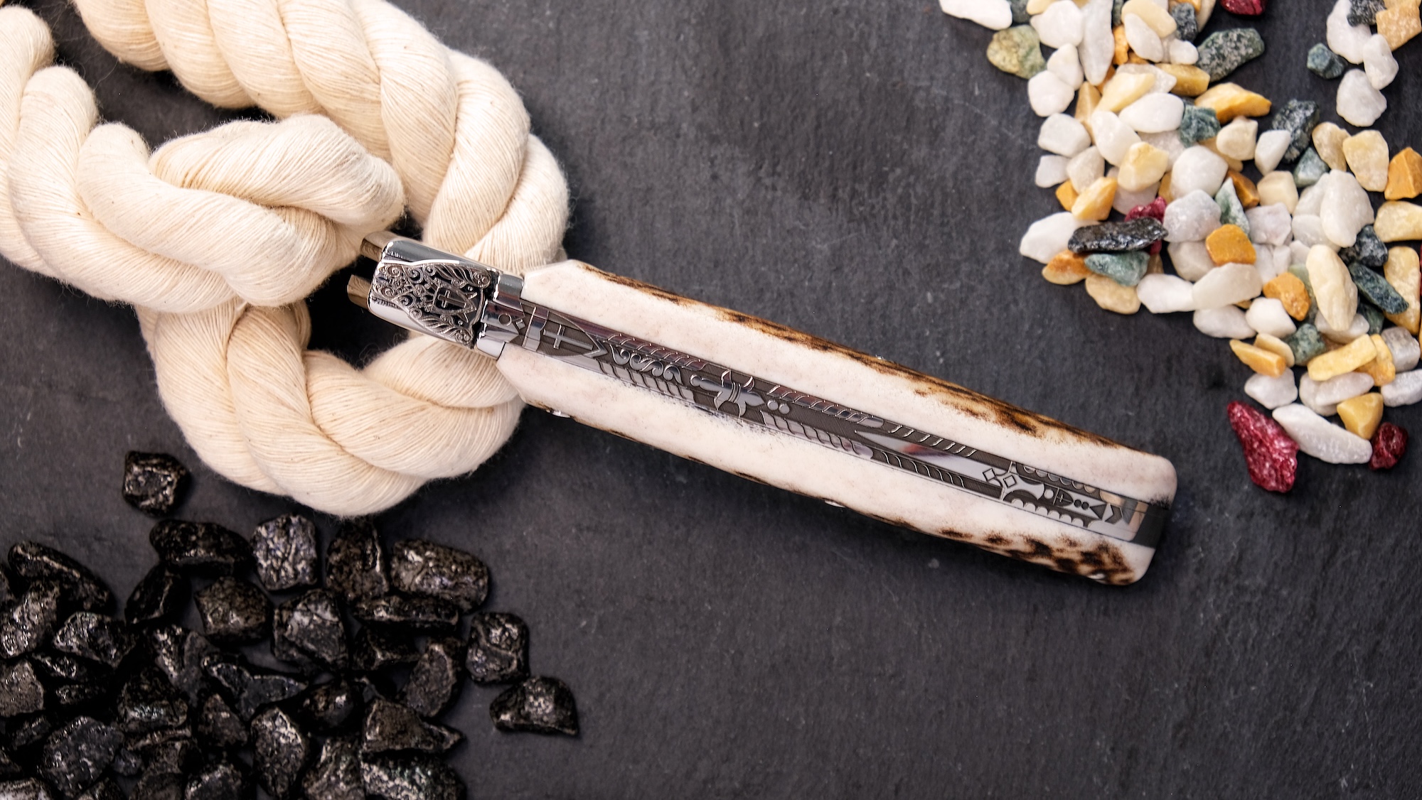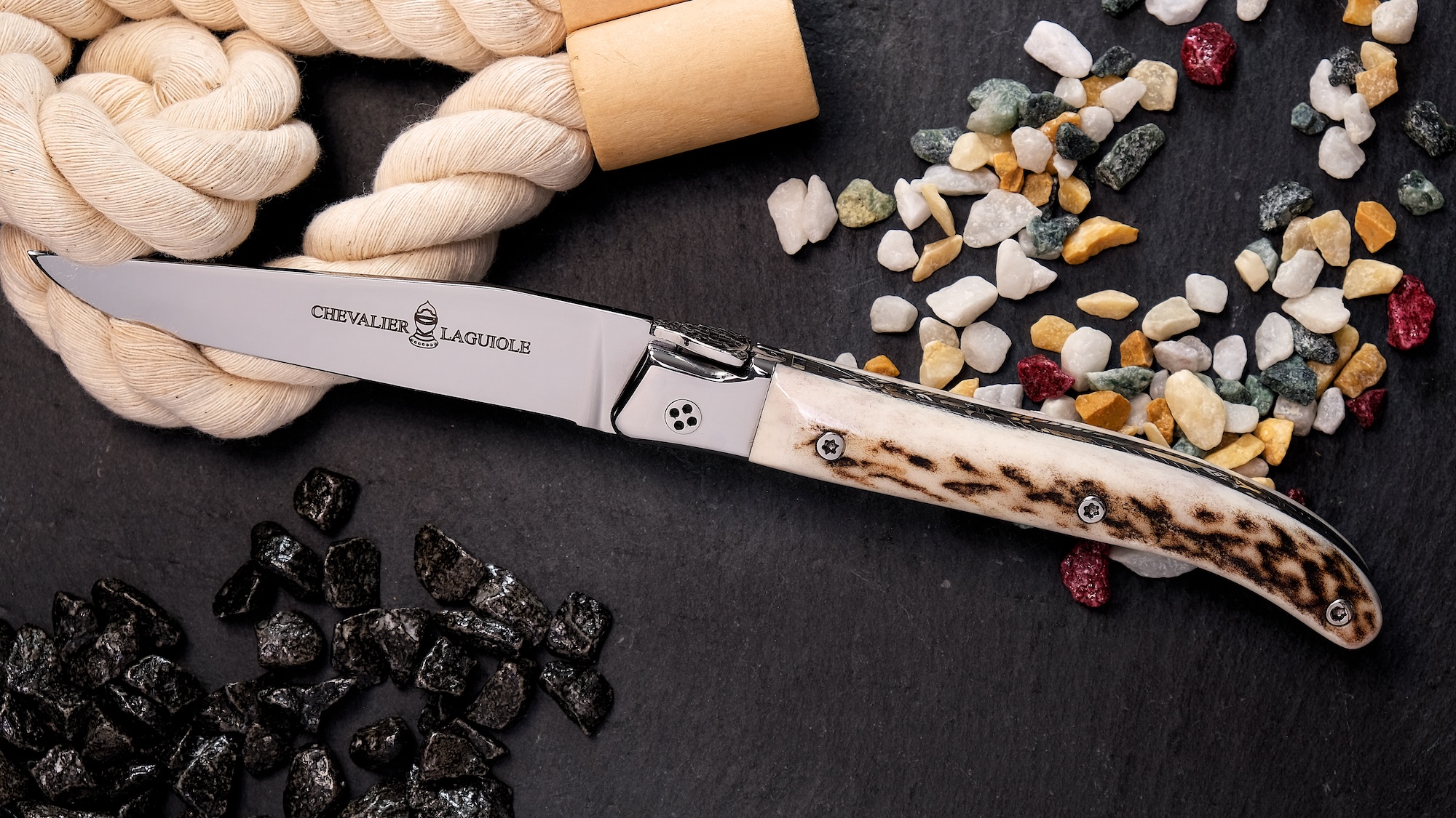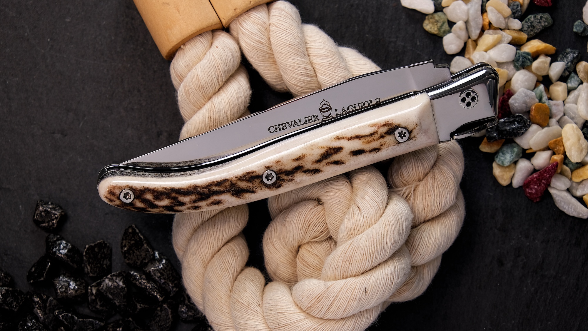 Taschenmesser Laguiole Chevalier Edition AVELINE 12, Hirschgeweih, Drop9-System, brillant