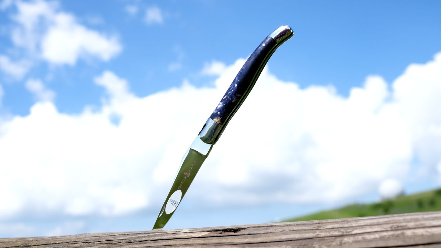 Taschenmesser Laguiole Chevalier, Edition Perceval, blauer Ahorn, double platines, brillant