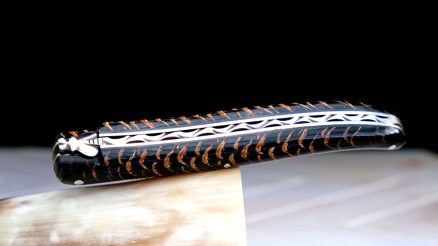 Offizielles Echtheitszertifikat - eine Tradition aufrecht erhalten! Wenn ein Laguiole‑Schmied mit Hingabe und jahrhundertealter Tradition sein Handwerk ausübt, dann erschafft er mit jedem Hammerschlag nicht einfach nur ein Messer — er erschafft ein einzigartiges Kunstwerk, das seine Seele trägt. Jede Klinge, jede Gravur, jede geschwungene Linie ist Ausdruck von Stolz, Präzision und der Liebe zum Detail.