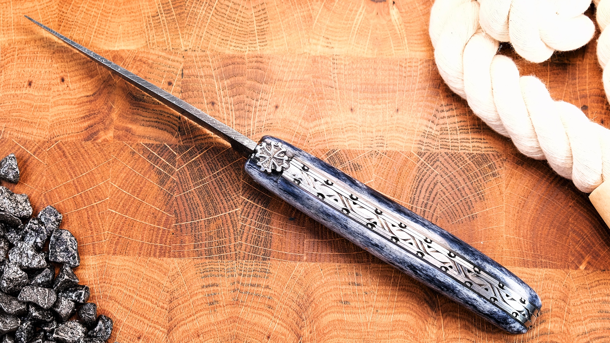 Pflegen Sie die Klinge mit unserem Balsam für Carbon-Damaststahl -->