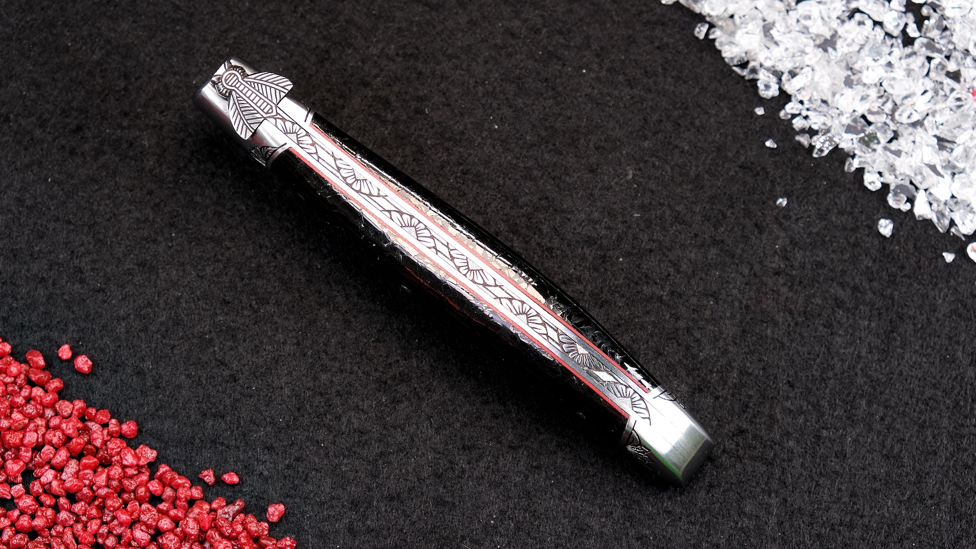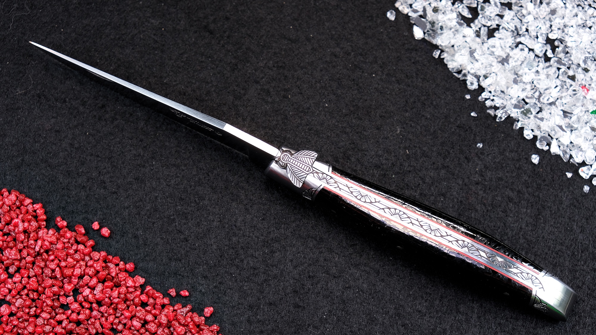 Die außergewöhnlichen Unikate von Laguiole en Aubrac aus der Serie BELLE, stellen einmal mehr die hohe Kunst der Messermacher aus Frankreich unter Beweis. Die Biene ist außergewöhnlich schön und mit sehr vielen Details verarbeitet, genauso wie dir Rückenguillochage. Ein einzigartiges Meisterwerk französischer Messermacherkunst.