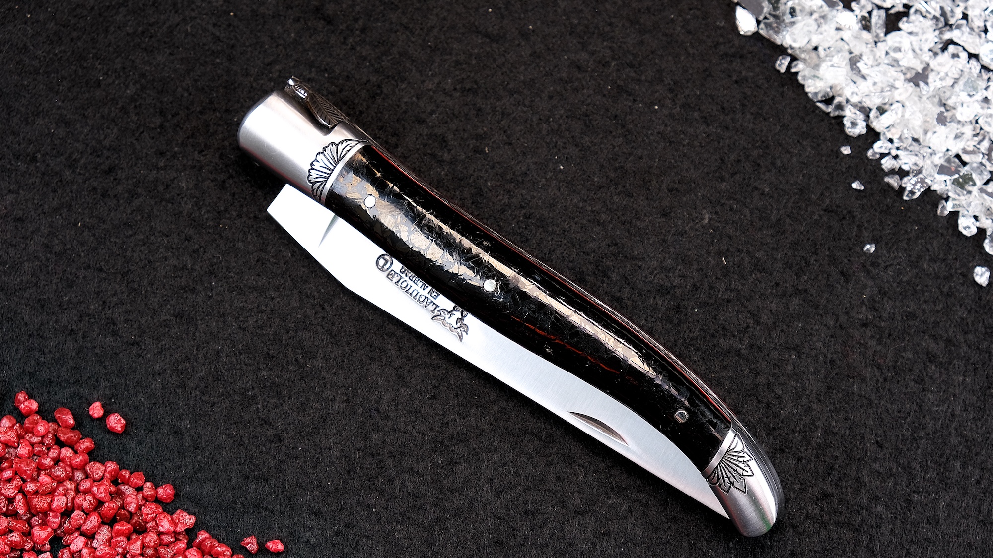 Taschenmesser Laguiole en Aubrac, Edition BELLE 38, Carbon, guillochierte Biene, brosse