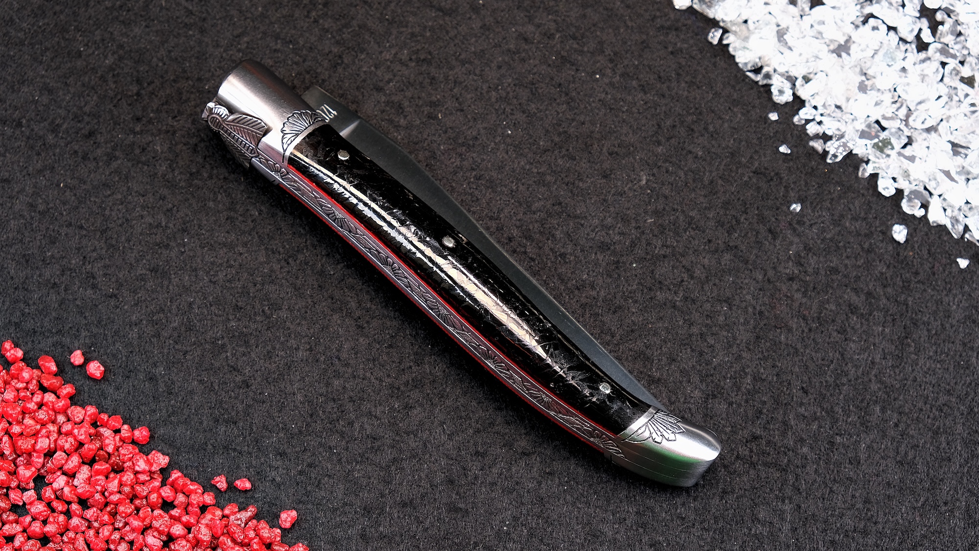 Offizielles Echtheitszertifikat - eine Tradition aufrecht erhalten! Wenn ein Laguiole‑Schmied mit Hingabe und jahrhundertealter Tradition sein Handwerk ausübt, dann erschafft er mit jedem Hammerschlag nicht einfach nur ein Messer — er erschafft ein einzigartiges Kunstwerk, das seine Seele trägt. Jede Klinge, jede Gravur, jede geschwungene Linie ist Ausdruck von Stolz, Präzision und der Liebe zum Detail.