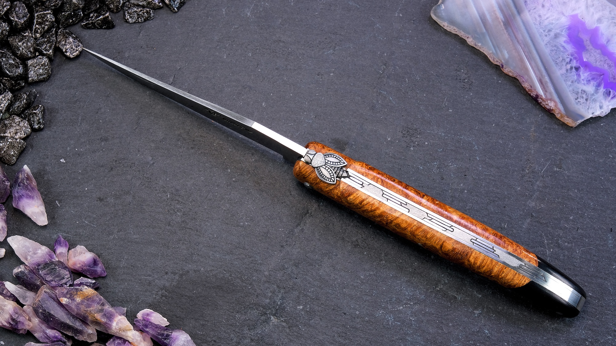 Man verliert sich in der Eleganz französischer Handwerkskunst – und versteht, warum diese Objekte weit mehr als Messer sind. Sie sind Statements. Sie sind Emotion. Sie sind die Art von Begleitern, die ein Leben lang Freude schenken.