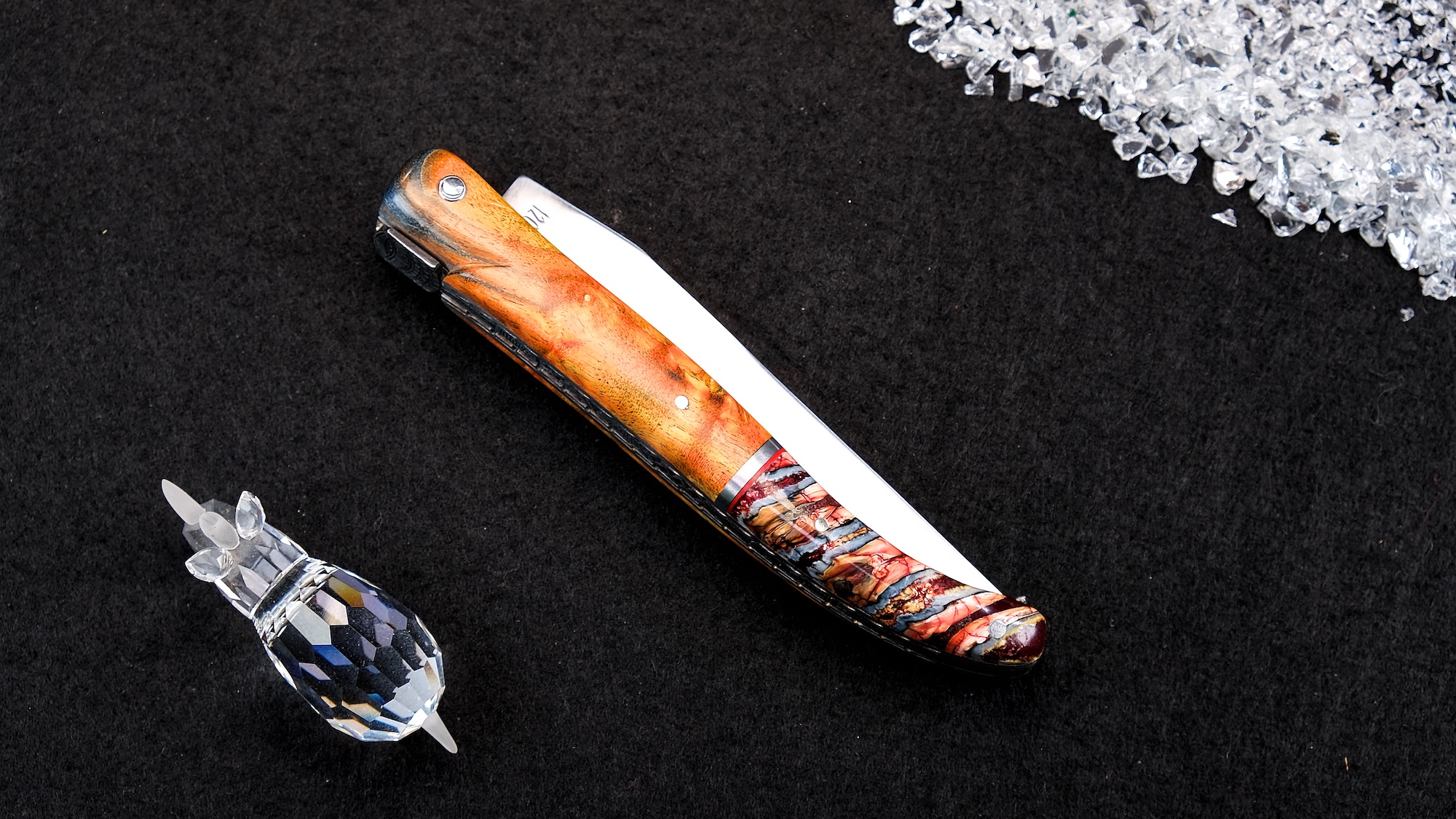 Die Liebe zum Produkt wird in jeder einzelnen per Hand geschliffenen Biegung und Rundung des Griffes, sowie in der harmonischen Auswahl der Hölzer oder Hornbacken sichtbar.