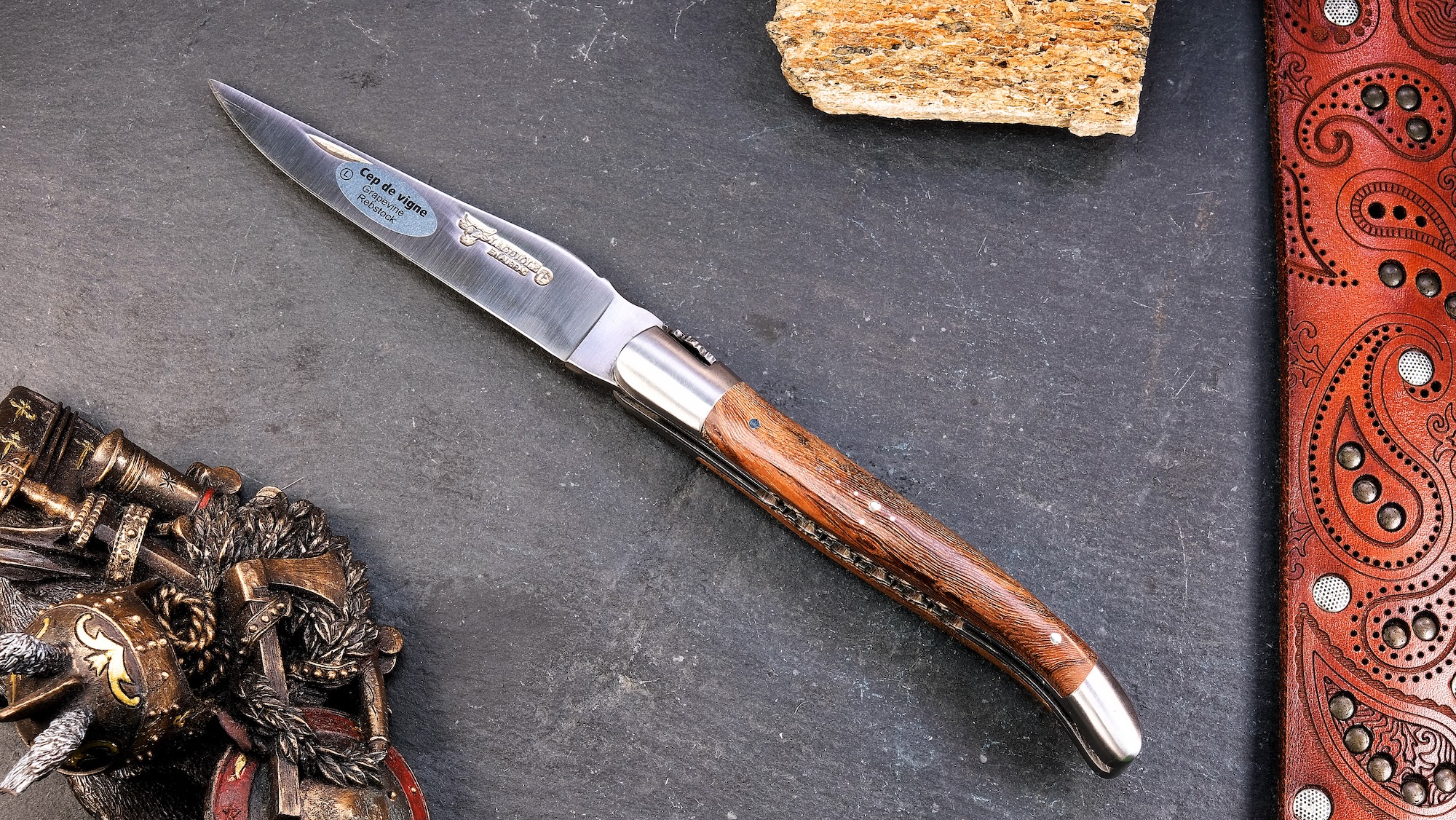 Taschenmesser Laguiole en Aubrac, Edition TRAUBE, Rebstockholz, Double Platines, brosse