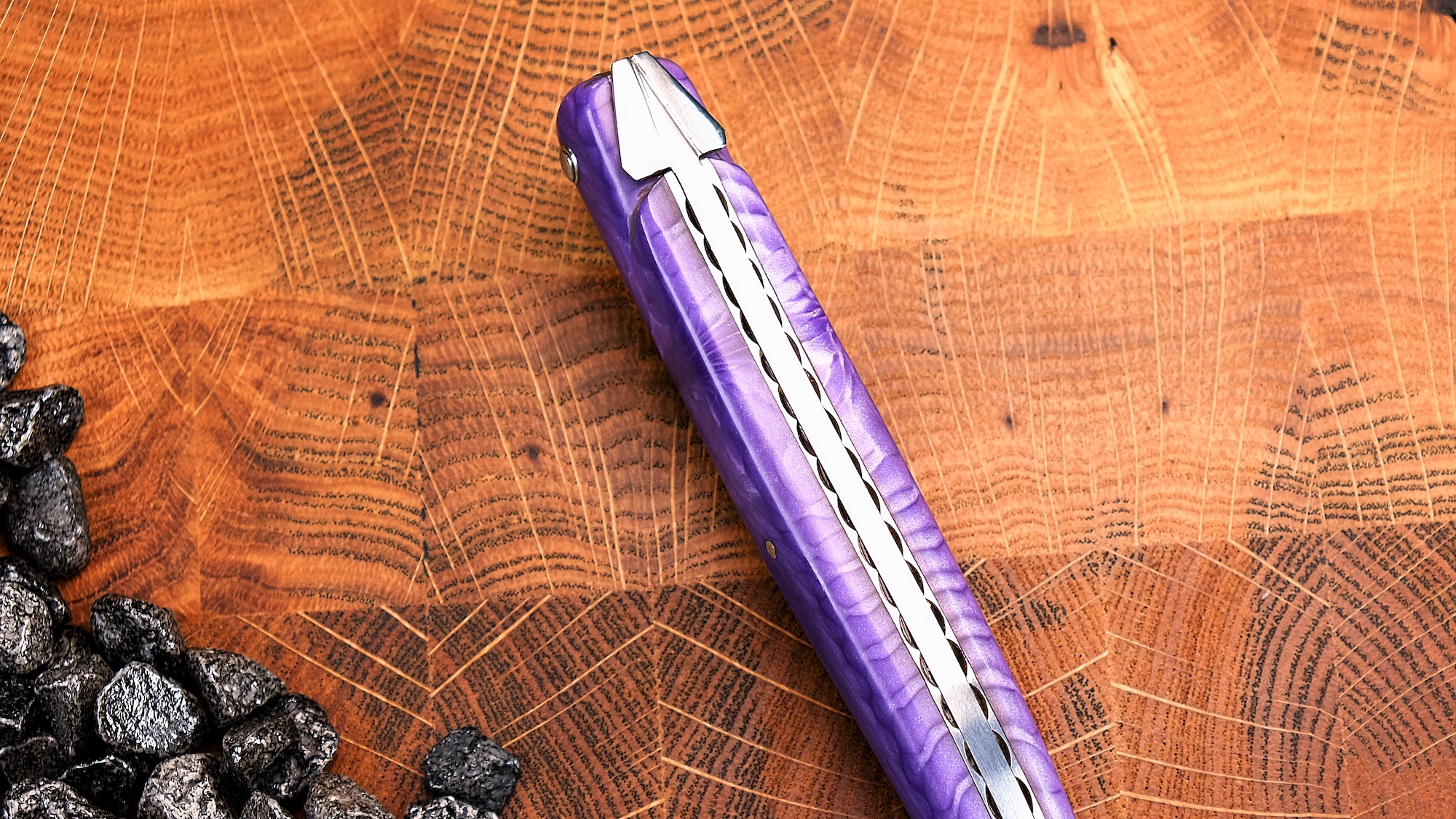 Taschenmesser Laguiole en Aubrac, JUMA 07, Violet, PLEIN, guillochierte Biene, brosse