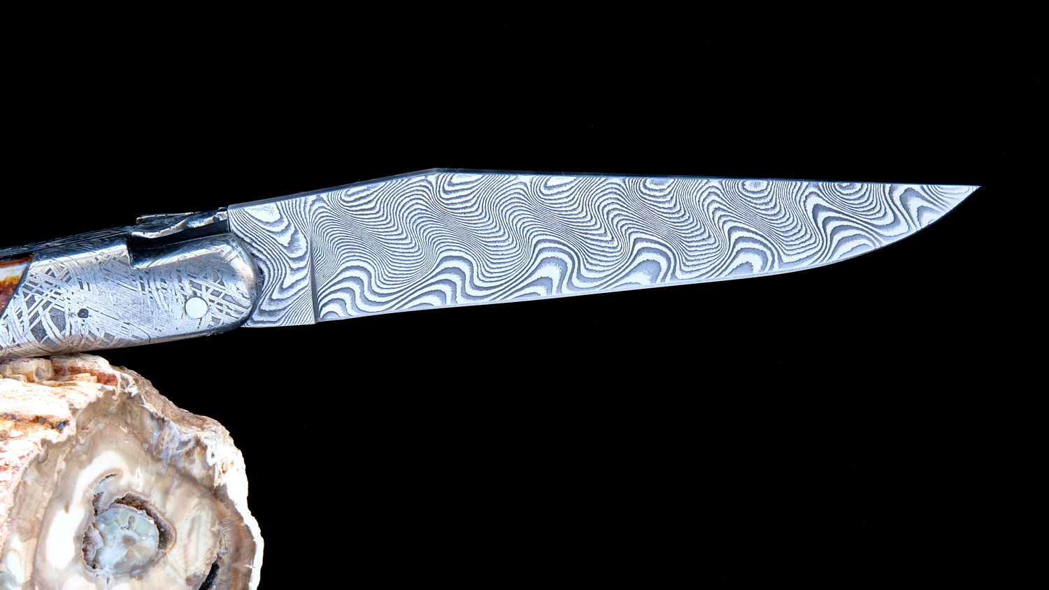 Taschenmesser Laguiole Honore Durand Edition METEOR 02, Meteorit, Damast, Mammutzahn, brosse