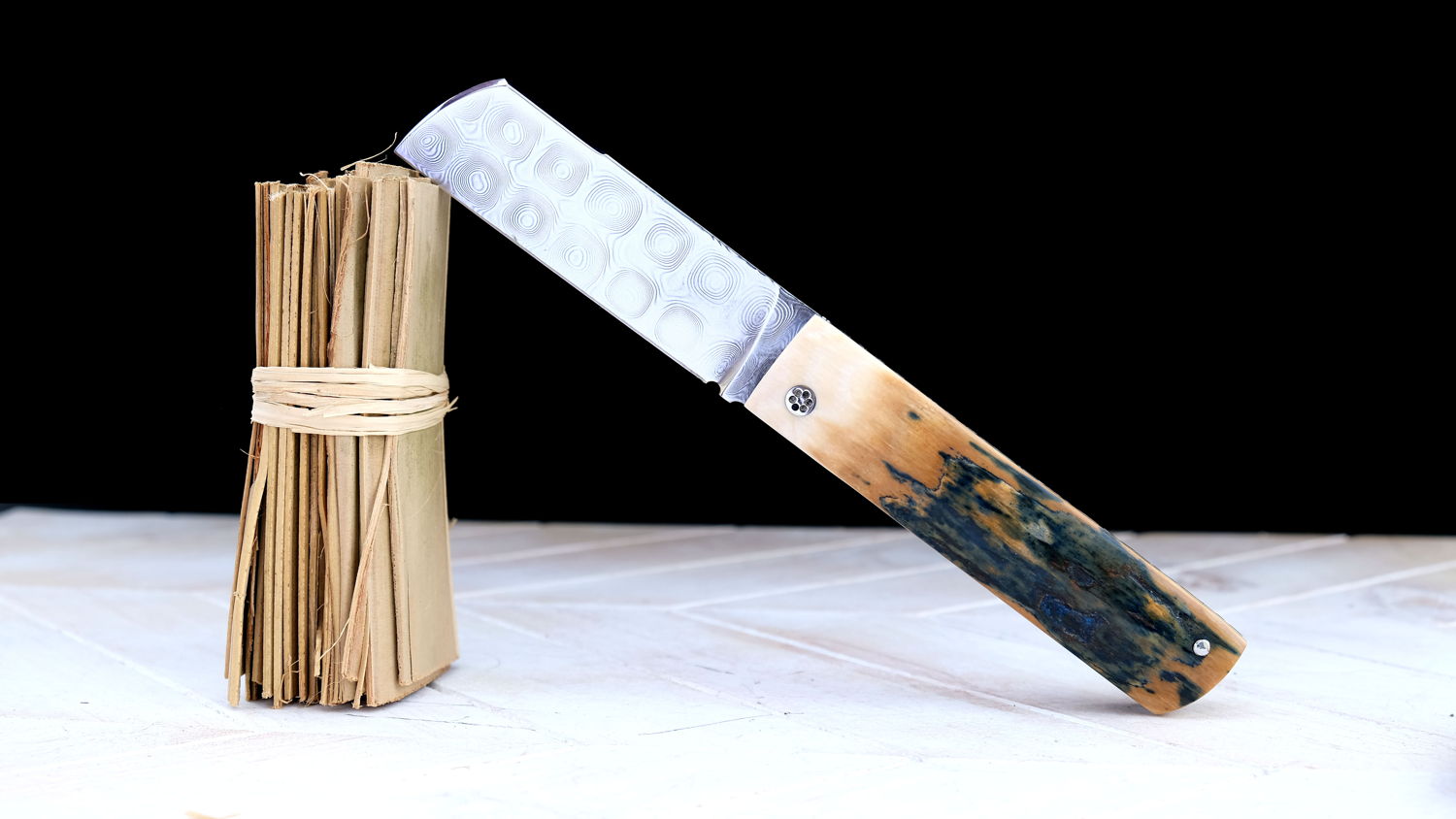 Die Schafsfuß-Klinge wurde für Seeleute und Soldaten auf den Schiffen entwickelt, damit verletzungen durch die Spitze Klinge vermieden werden können. Die Form des Messers wurde vom den Kolonialmesser inspiriert mit einer Prise der zeitgenössischen japanischen Messern. Hier hat Thomas Fleury eine außergewöhnliche und einmalige Form geschaffen, die ihresgleichen sucht.