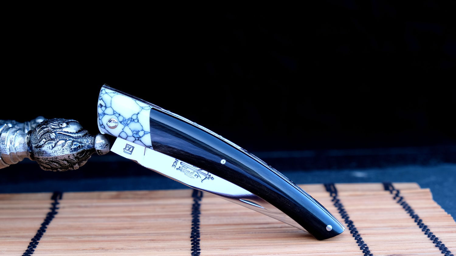 * Griff aus edlem Büffelhorn + weissem rekonstitierten Stein