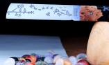 ACHTUNG: Dieses Messer ist ein UNIKAT und nach Verkauf nicht noch einmal bestellbar! Die Klinge ist besonders gestaltet mit einem außergewöhnlichem Motiv über die gesamte Breite und Länge, der Rücken ist gelasert mit einem sehr schönem Motiv und der Griff besteht aus Kunstharz mit Blüten in rot und Holzeinlagen - was für eine optische Augenweide.
