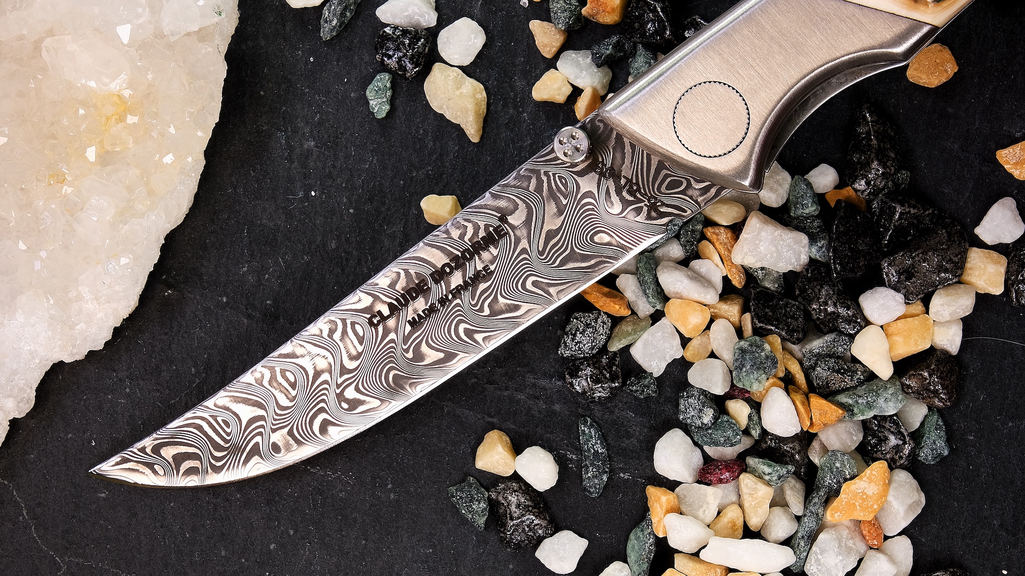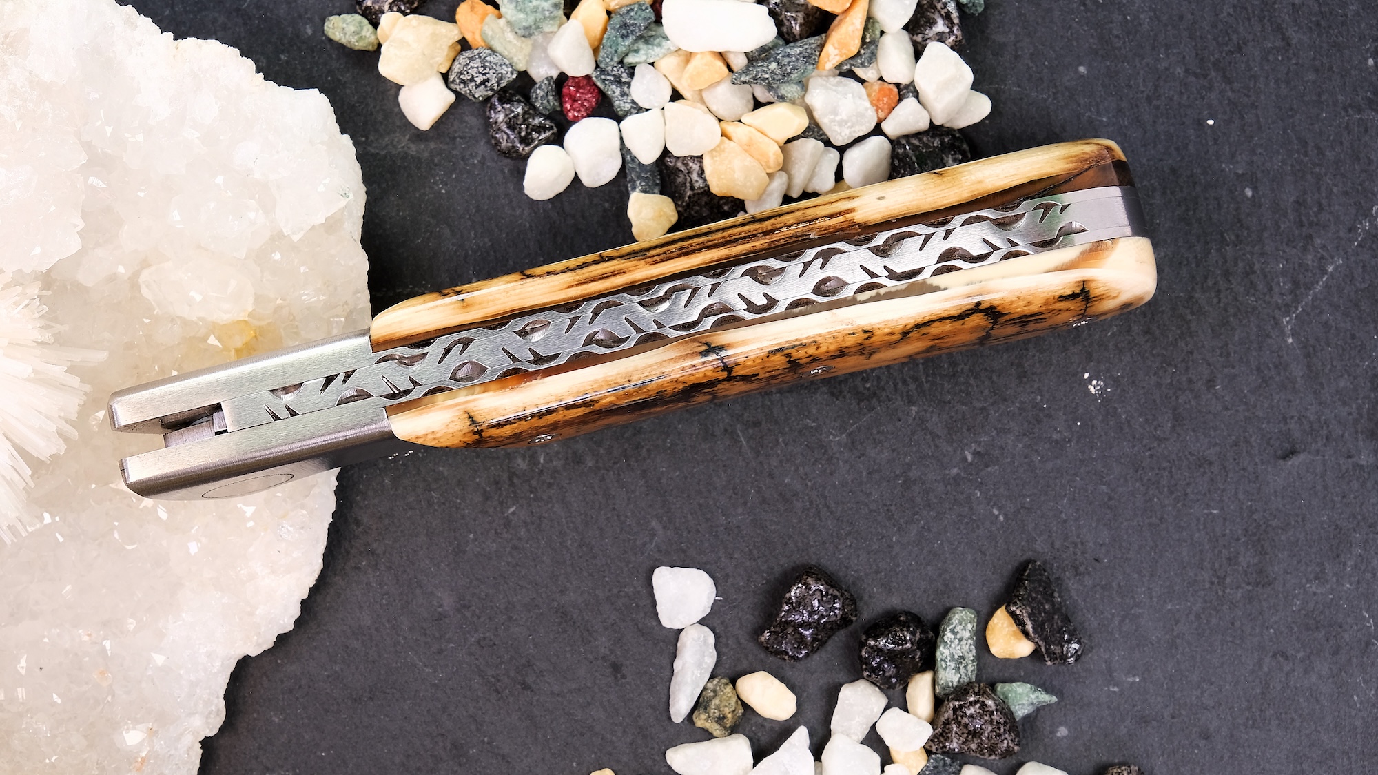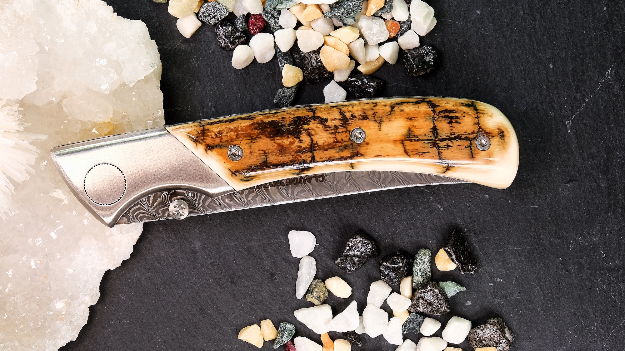Mammutstoßzahn ist einer der außergewöhnlichsten Materialien im Messerbau. Es ist optisch ansprechend und hat eine außerordentliche Haptik. Aber erst wenn man sich bewusst macht, dass man in der Hand ein Stück Geschichte hält, ein Relikt aus alten Zeiten, über 10.000 Jahre alt, dann erst begreift man die endlose Schönheit dieses Materials.