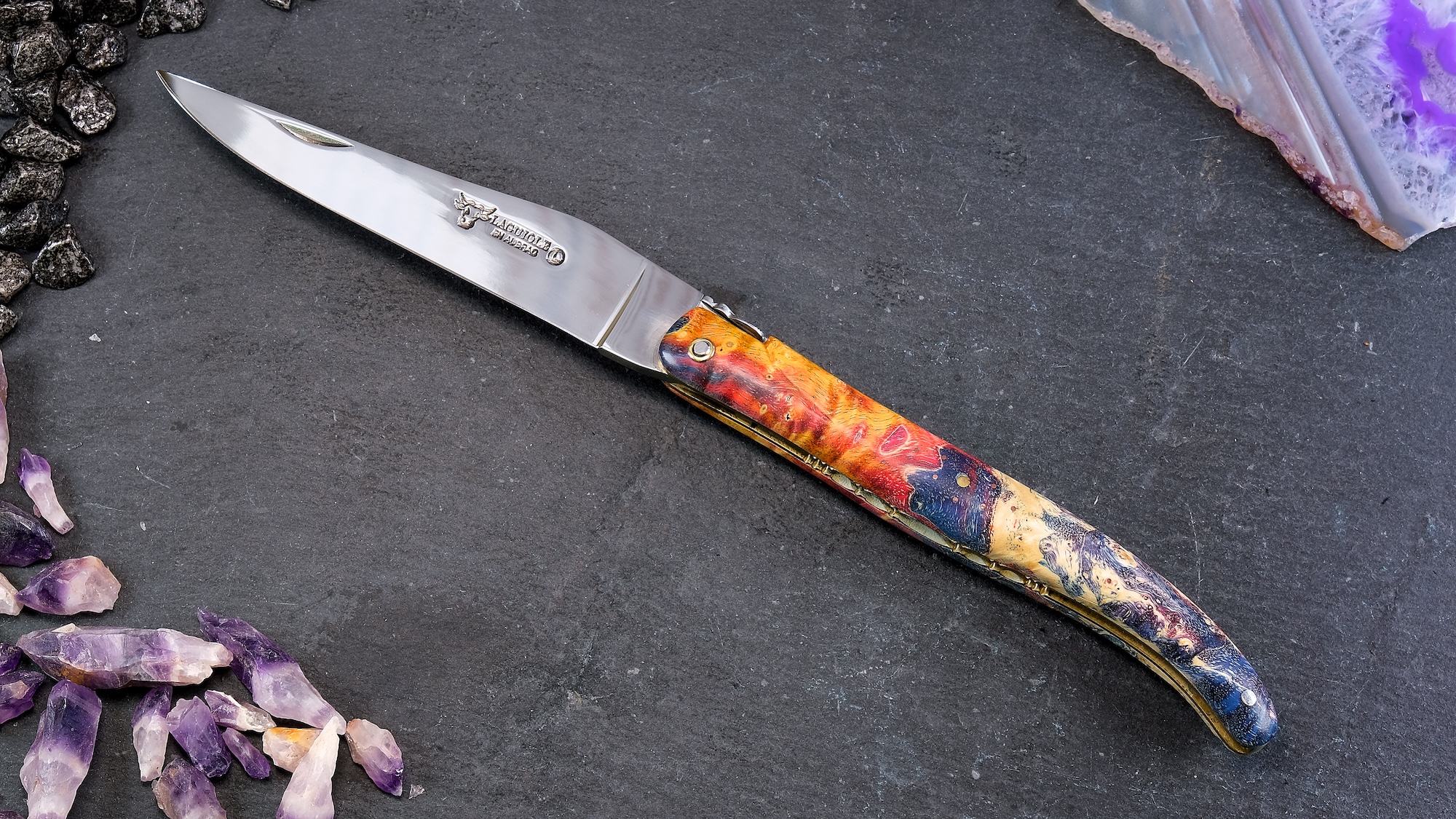 Laguiole en Aubrac ist die zweitgrößte Laguiole-Schmiede in Frankreich und fertigt Laguiole-Taschenmesser, -Steakmesser, -Gabeln und -Küchenmesser in höchster Qualität. Die Messer von Laguiole en Aubrac verbinden in einer perfekten Symbiose die lange Tradition der Messermacher mit einem ausgeprägten Hang zur Perfektion, wobei der Preis trotzdem in solidem Rahmen bleibt.