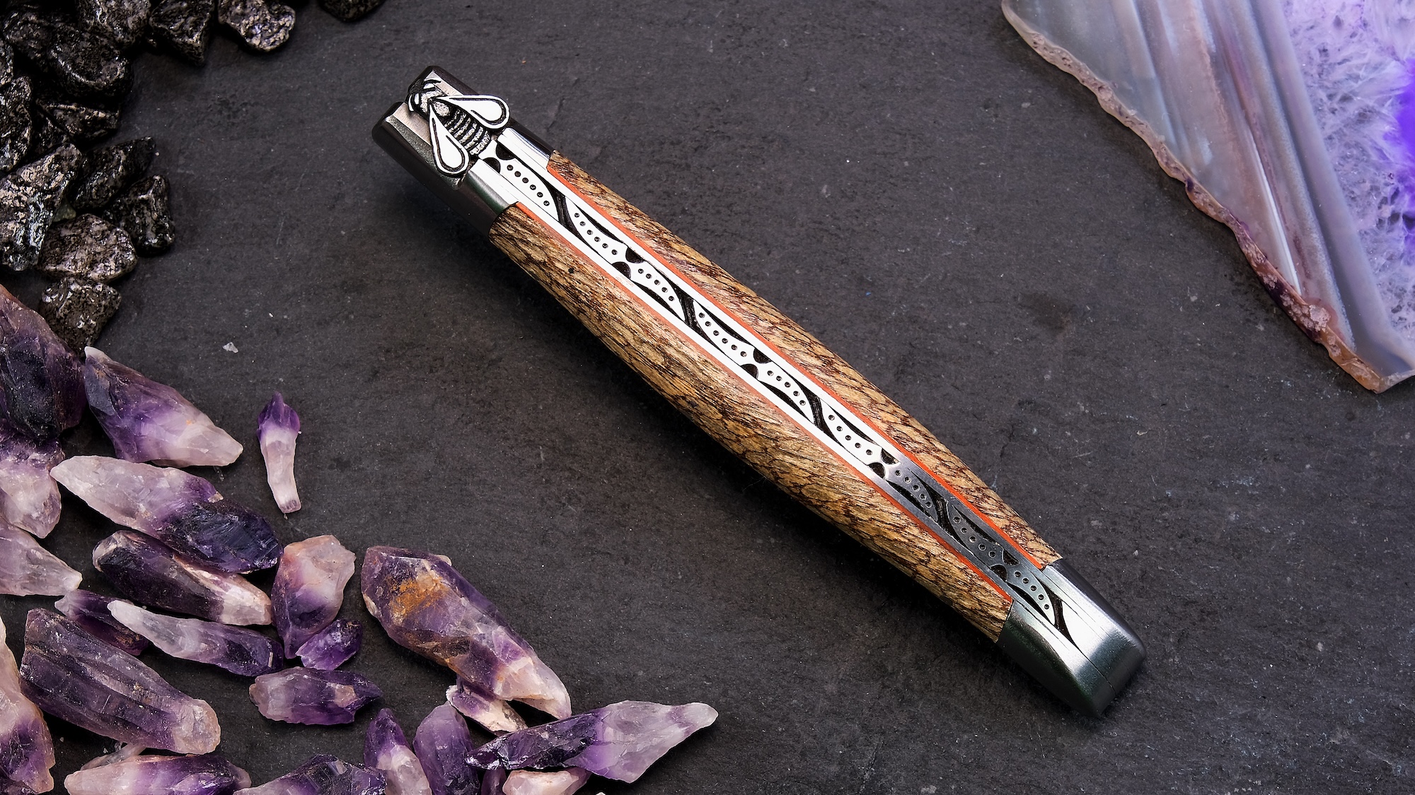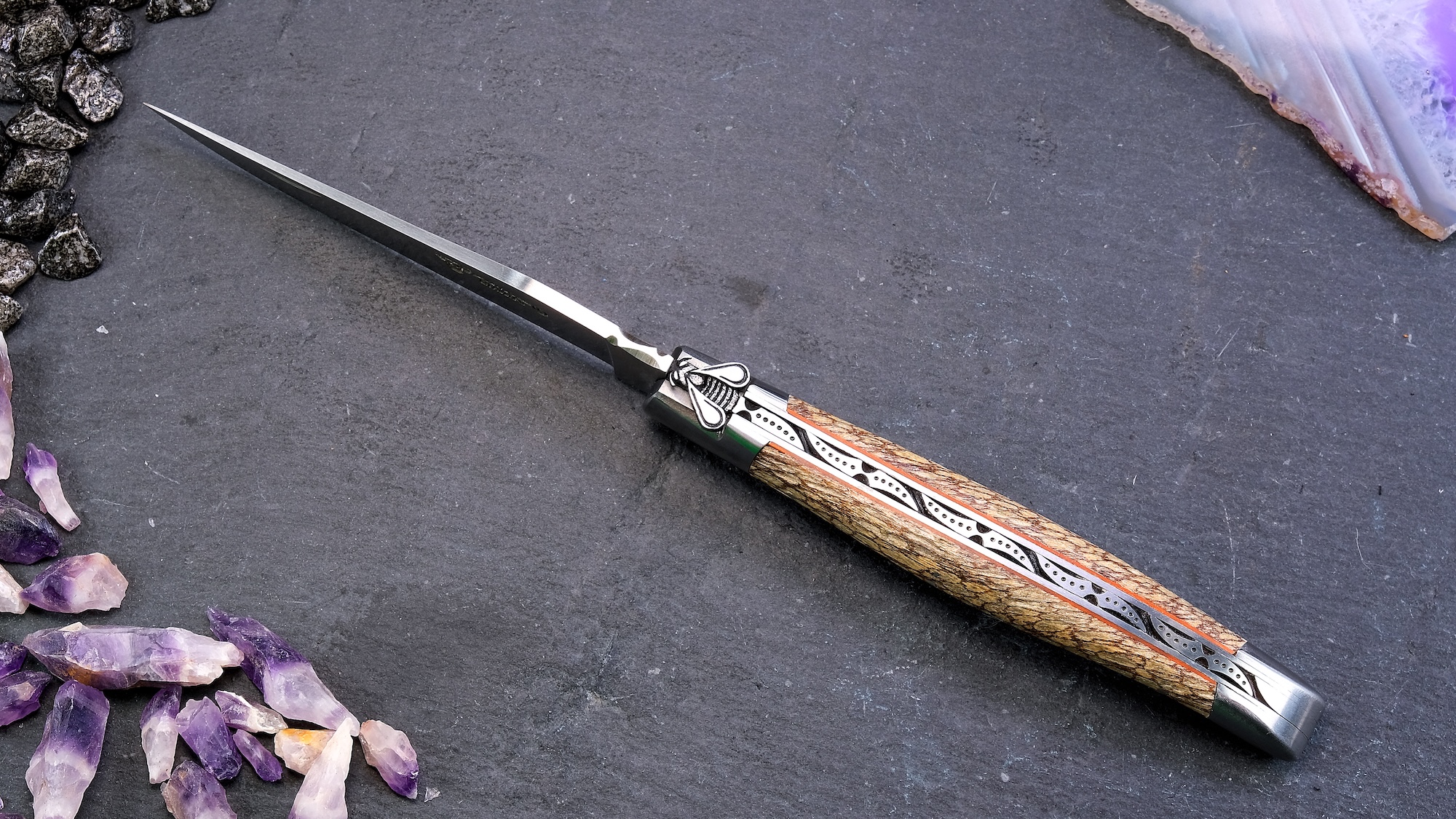 Es gibt Laguiole „von der Stange“… und es gibt jene Messer, die man nicht einfach besitzt, sondern erlebt. In dem unteren Video präsentiere ich dieses und noch weitere 2 außergewöhnliche Editionen, die den Begriff Taschenmesser neu definieren: DRACHENBIENE, CAMELEON und DIE 3. Jedes dieser Werke ist ein Unikat – erschaffen aus erlesenen Griffmaterialien, veredelt durch beeindruckende Guillochagen und gekrönt von einzigartig gestalteten Bienen, die nur die besten Messermacher Frankreichs so lebendig formen können.