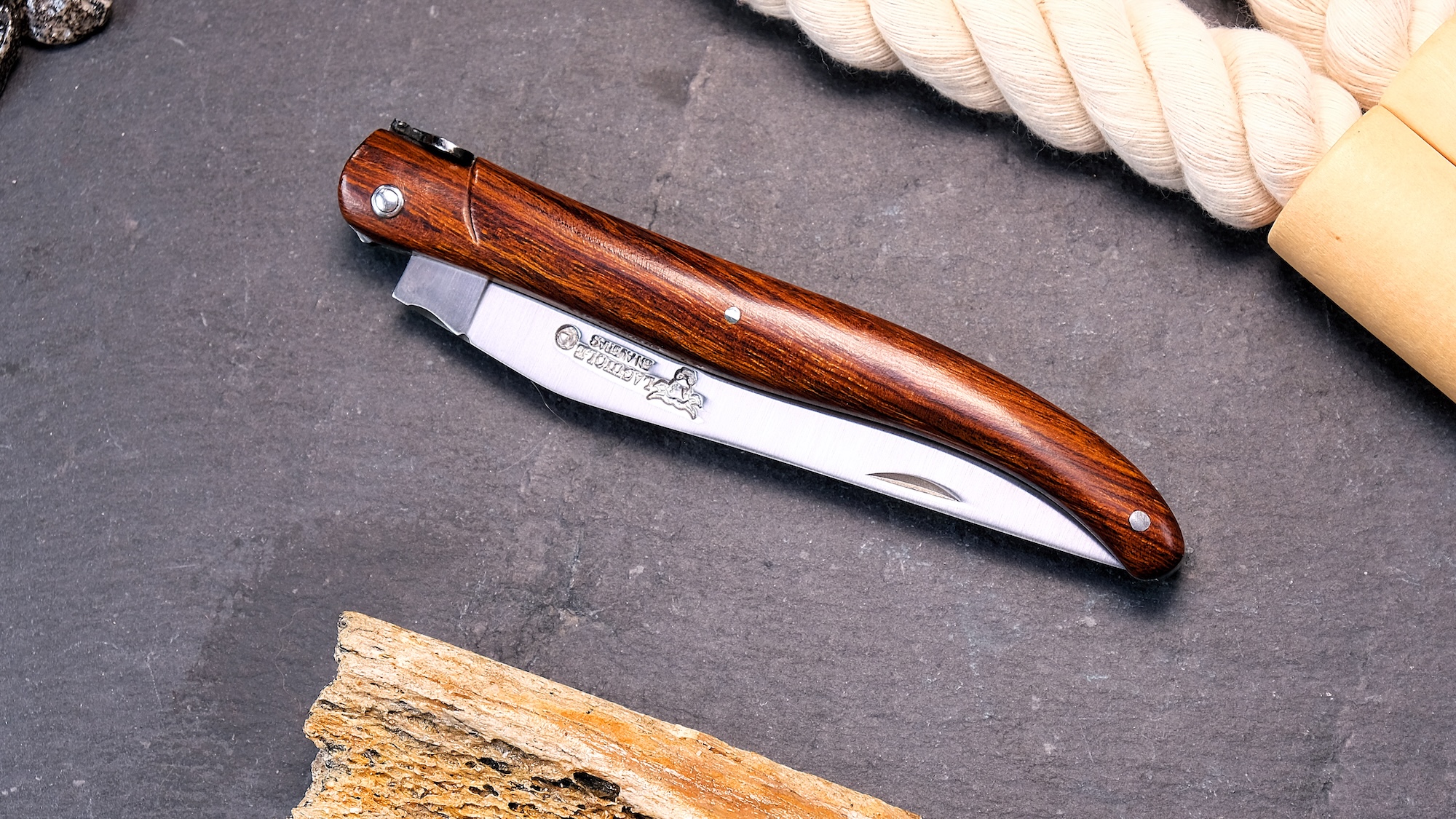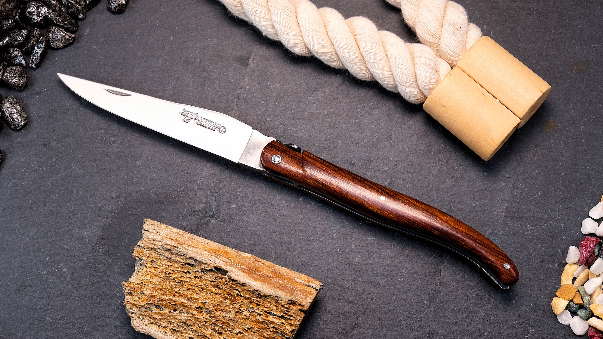 Für Liebhaber robuster und ausdrucksstarker Messer ist dieses Laguiole ein echtes Highlight: ein charaktervolles Schmuckstück mit der natürlichen Stärke des Eisenholzes.