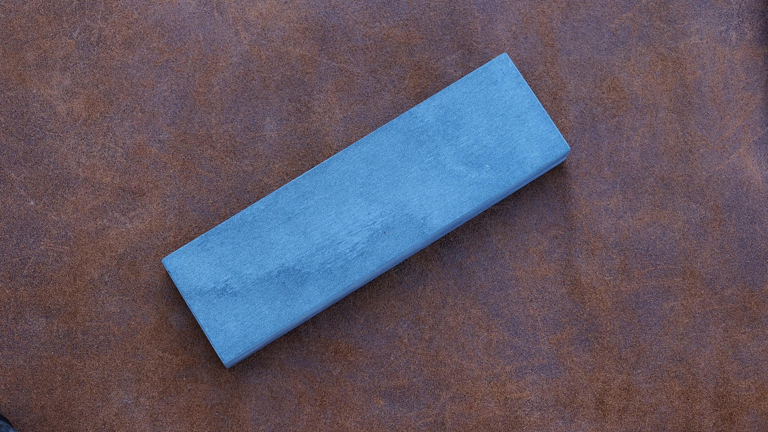 Methode 1 (die graue, rauerer Seite des Steins): Man macht etwas Wasser auf dem Stein und beginnt zu schleifen. Wenn man das Messer auf dieser Schlammschicht auf dem Stein schleift, entspricht dies einer Körnung von ca. 1.000. Der Schlamm enthält kleine natürliche Partikel, die beim Schleifen entsprechend helfen.