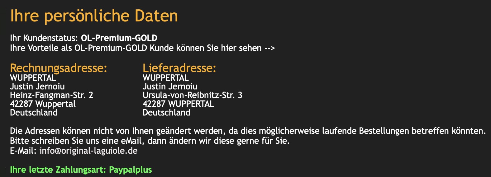 Ihre Daten im Kundenbereich bei original-laguiole.de
