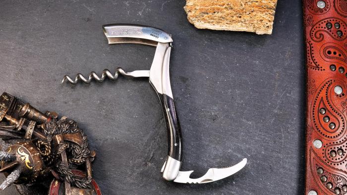 Ein Sommelier (französisch für Weinkellner) empfiehlt den Gästen nicht nur den passenden Wein zu ihren Speisen, sondern ist auch für optimale Lagerung des oft wertvollen Weinbestandes veranwortlich. Er ist immer über den optimalen Reifestand jedes einzelnen Weins informiert, öffnet dem Gast fachgerecht die Flasche und schenkt ein. Unabdingbar ist hierzu das geeignete Werkzeug, ein Sommeliermesser! Mit dem handgeschmiedeten Laguiole Sommelier, der gebogenen Klinge zum Kapselschneiden, der fünffach gewendelten Spindel und der besonders gestalteten Griffform können auch Sie in idealer Balance, kraftvoll und zugleich weich, jede noch so widerspenstige Flasche öffnen.
